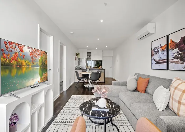 Il Stylish 2-Bed Apartment With Stunning City Views Melbourne si trova nel centro di Melbourne e offre un rapido accesso a Vincent Design, che si trova a soli 5 minuti a piedi. Gli ospiti potranno godere di una piscina copertain quest'appartamento, situato a 550 metri daC Crown Towers Melbourne.